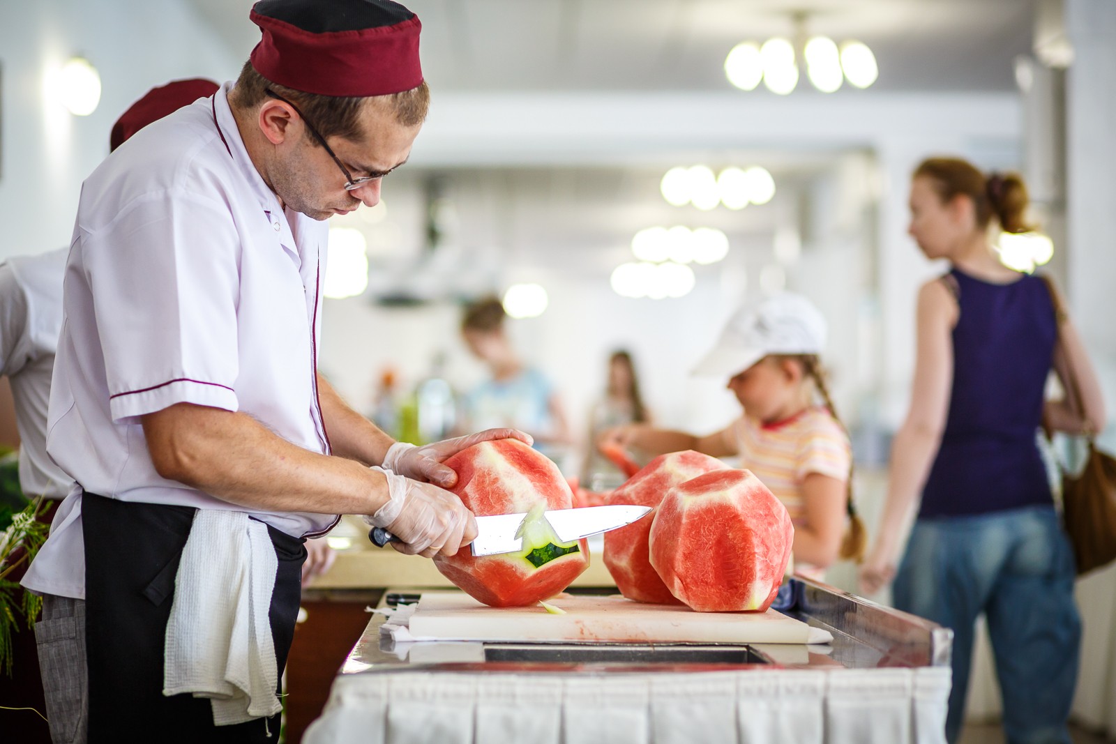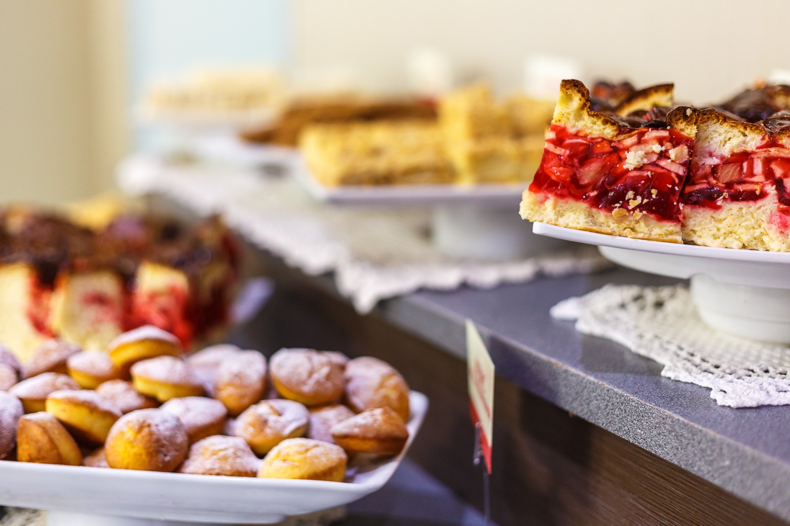 Питание в санатории «Красная Талка» организовано по системе «шведский стол». На линии раздачи представлен широкий ассортимент первых и вторых блюд, холодных и горячих закусок, свежих салатов, десертов, сезонных фруктов и выпечки собственного производства. В течение рабочего времени ресторана ассортимент блюд регулярно пополняется. Гости самостоятельно формируют меню, выбирая понравившиеся блюда; при необходимости официанты оказывают консультационную поддержку. К каждому приёму пищи предоставляются бесплатные напитки: лимонад, соки, компот, чай и кофе. По назначению врача организуется диетическое питание с учётом индивидуальных медицинских показаний.